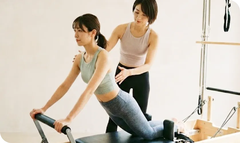 自分のペースで指導を受けながら集中的にアプローチするマシンピラティスへ!